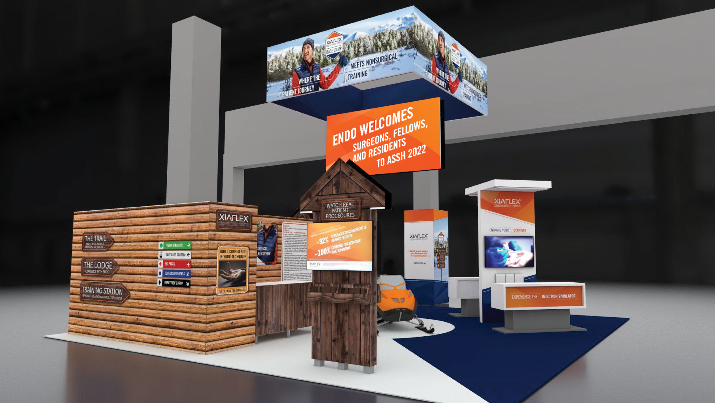 This congress booth creates a dual experience, blending the patient journey with orthopedic professional training on Dupuytren’s contracture. The patient journey side is set in a rustic outdoor ski resort theme, designed to evoke the outdoor challenges faced by patients with limited hand mobility. A key interactive feature includes a specialized glove that visitors can wear to simulate the restricted finger movement caused by Dupuytren’s contracture. With the glove on, visitors experience the difficulty of gripping objects, such as a snowmobile handlebar, offering them a first-hand understanding of the physical limitations patients endure in everyday activities.